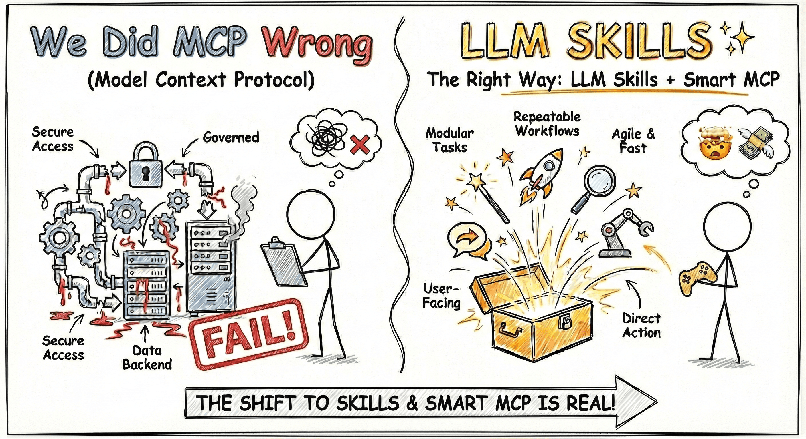 We made the mistake of encoding portable knowledge into connected tools. Skills encode what to do and how to do it. MCP provides access to external systems that skills can't bundle. When we conflated the two, we built orchestration tools that burned tokens re-explaining workflows the model could figure out itself.